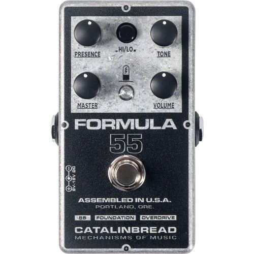 Pédale d'overdrive inspirée du Tweed Deluxe 5E3 avec une grande amplitude, de Grant Green à Crazy Horse ! Grosse et puissante, et pourtant raffinée, la Formula n°55 se fond à votre ampli, le transformant en tweed monstre ! Elle reproduit exactement la section de préampli du Fender Tweed 5E3 Deluxe en utilisant un chemin de signal à base de JFET discret. Les réglages Volume et Tone reproduisent pièce par pièce le circuit du 5E3 pour vous donner une réponse d'ampli Tweed authentique. La section de sortie est conçue pour vous donner du punch et du volume avec une faible impédance de sortie pour bien attaquer votre ampli. Mettez le sélecteur sur la positon Lo pour la réponse plus clair d'un ampli Tweed. La position Hi fait comme si vous changiez les lampes de votre ampli pour des lampes à gain plus élevé.